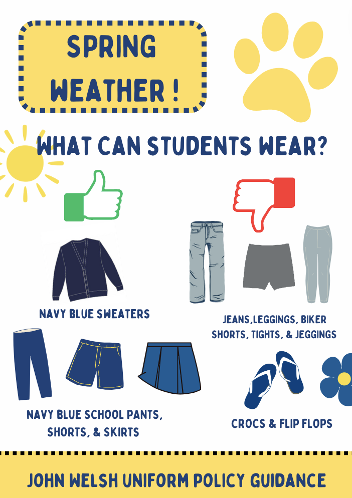 - The student’s name will be taken, and the parent/guardian will be notified of failure to conform to the uniform policy.
